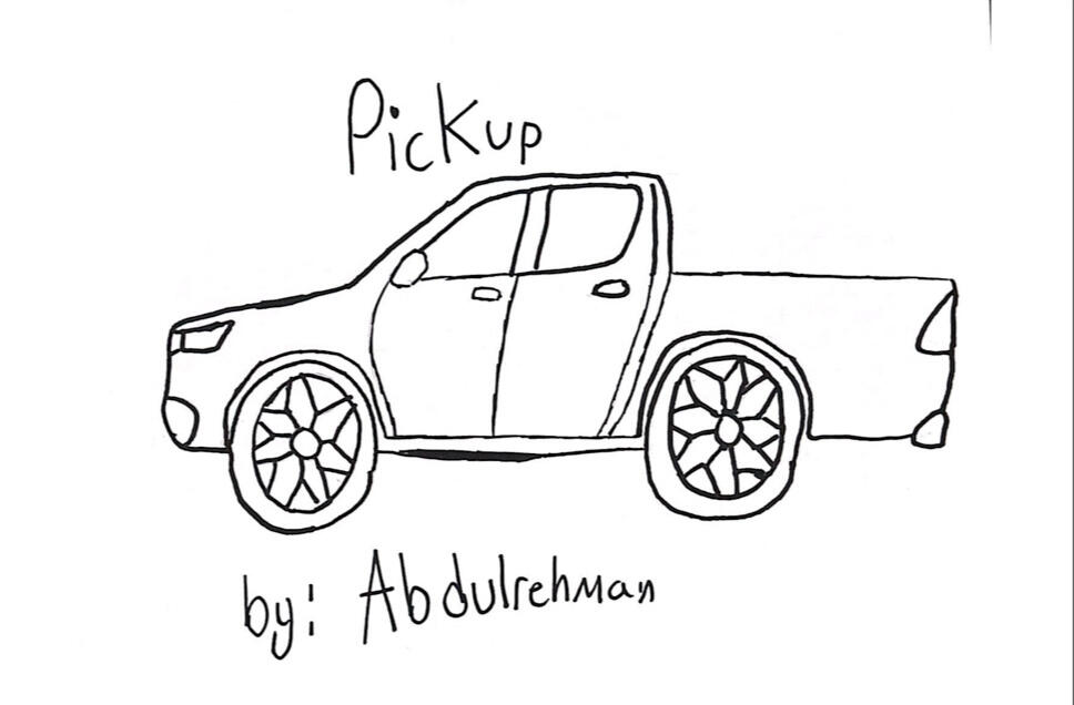 A pickup truck or pickup is a light or medium duty truck that has an enclosed cabin, and a back end made up of a cargo bed that is enclosed by three low walls with no roof (this cargo bed back end sometimes consists of a tailgate and removable covering).